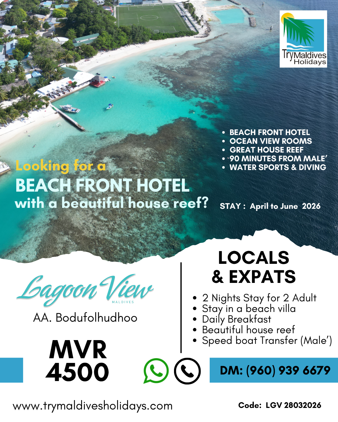 Designed especially for locals and expatriates working in Malé, our packages provide the perfect balance of convenience, comfort, and value. Whether you are planning a romantic weekend, a family getaway, or a relaxing escape with friends, Lagoon View Maldives has something for everyone